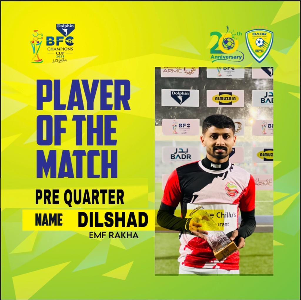 PLAYER OF THE MATCH PRE QUARTER NAME DILSHAD EMF RAKHA